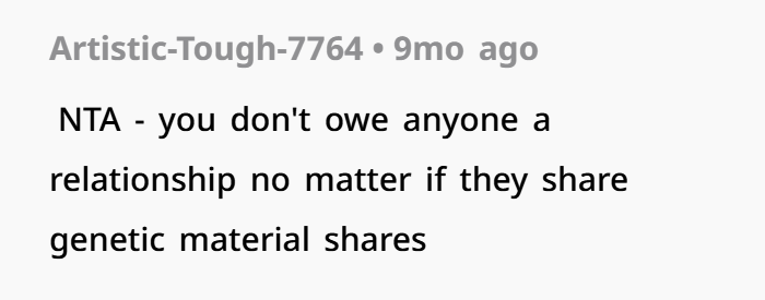 Could things change in the future? Maybe. People grow, circumstances shift, emotions soften over time. It’s possible that years down the line, OP might feel differently about his dad or even about his half-sister. But that has to happen naturally. It can’t be forced through guilt, pressure, or family lectures.