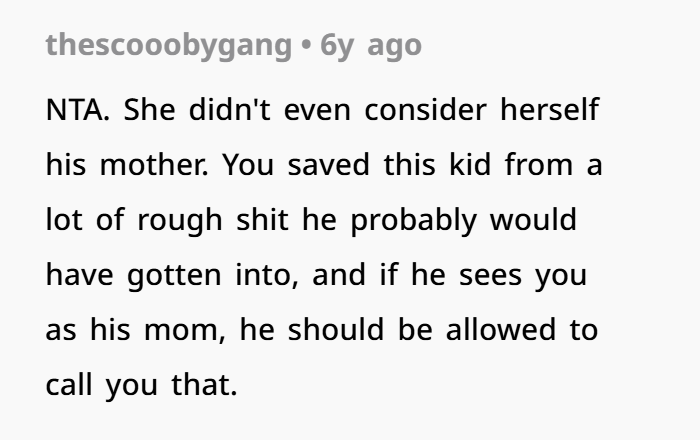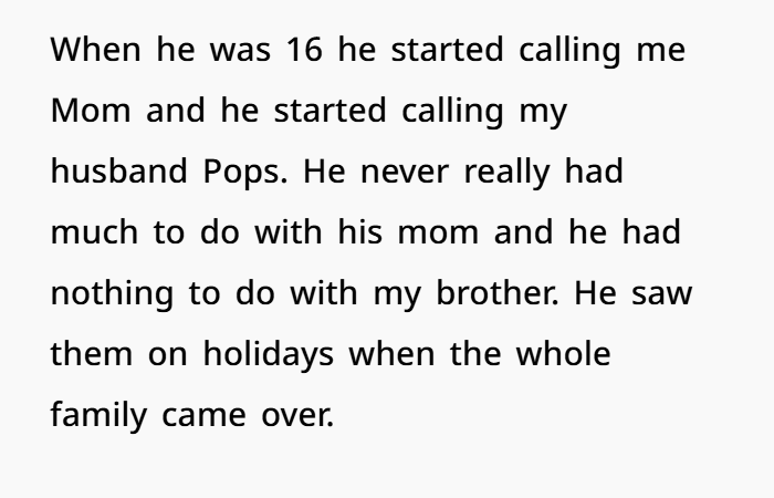 And here’s the kicker — adult relationships formed from childhood attachment often stick. That’s why telling him to stop calling her “Mom” now could feel like stripping away the safe identity he has built for himself. Psychologically, that’s damaging. It’s not just words — it’s what those words represent.