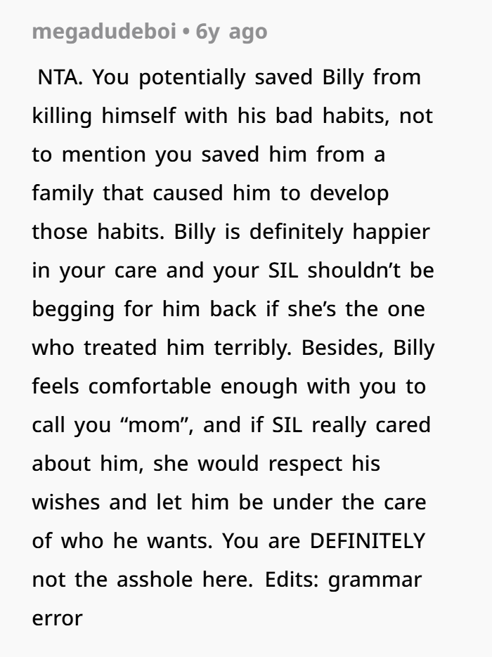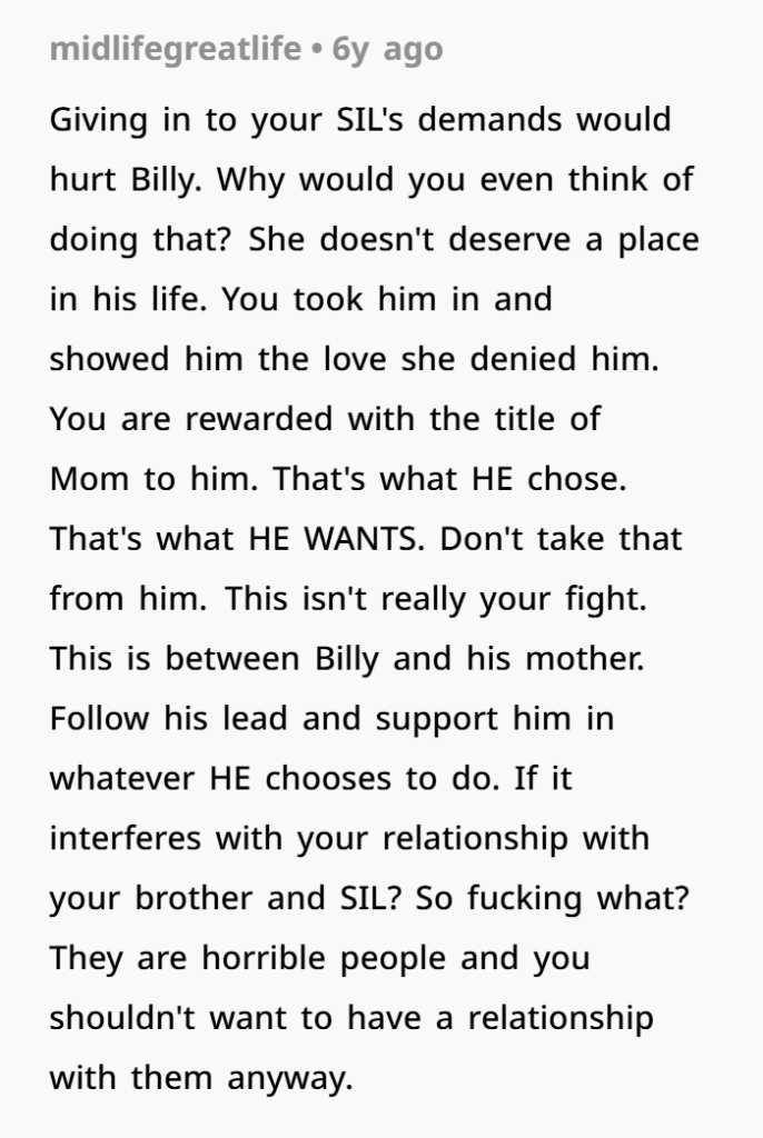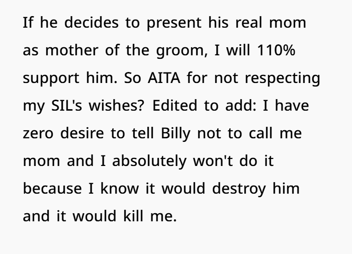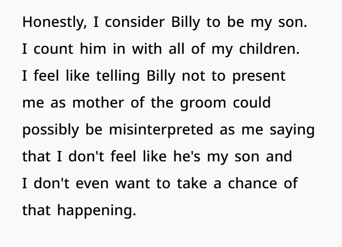 This isn’t about stubbornness. This is about protecting someone’s emotional well‑being and respecting the reality of what family means. If Billy has found healing and love calling you “Mom,” that deserves respect — not erasure for someone else’s discomfort.