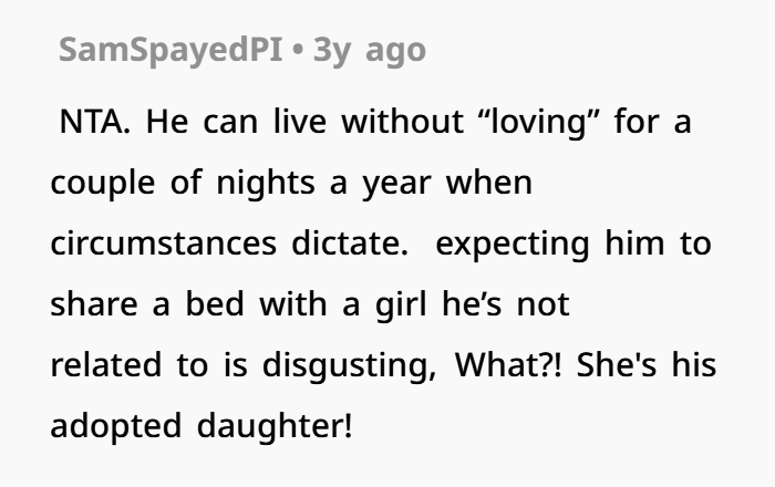 Then there’s the relationship dynamic between a parent and an adoptive parent. Legally speaking, once a child is adopted, the adoptive parent holds the same rights and responsibilities as a biological parent. Family law in most U.S. states — including Texas — treats adoption as creating a permanent legal parent-child relationship. That means the adoptive father is recognized in the eyes of the law exactly the same as if he were biologically related. So the idea suggested by some relatives that sharing a bed with his daughter is “disgusting” simply because they are not biologically related reflects social stigma rather than legal or psychological consensus.
