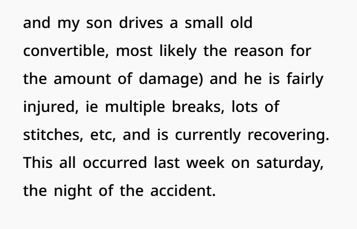 - The son was in pain and recovering from trauma