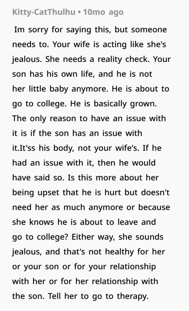Another layer to consider is consent and appropriateness. The son didn’t object to the affection. In fact, it likely comforted him. There’s no indication that the behavior was excessive or inappropriate beyond the mother’s discomfort. So this isn’t really a case of something objectively wrong happening—it’s more about subjective perception.