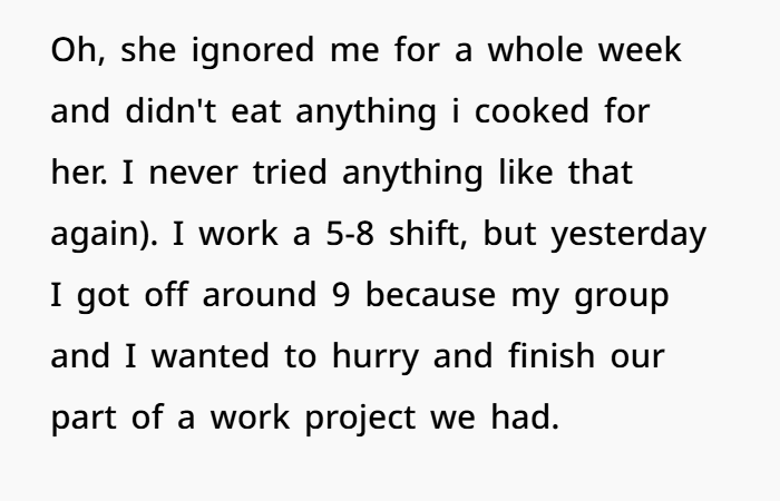 Another user admitted they had a very restricted diet. Their stepmom tried to push healthy meals, but when the eater refused, tensions exploded. Reddit+1 After talking, they agreed: the child would sample parts of the meal, or prepare parts themselves, and the stepmom would be more open to adjustments. In many stories, what resolves things is communication + compromise combined with boundaries.