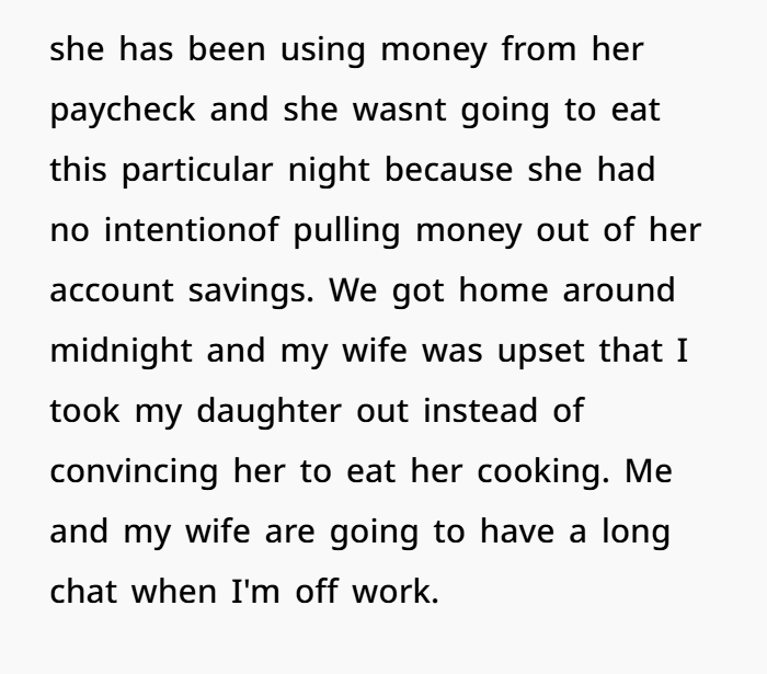 AITAH for Taking My Daughter Out to Eat When My Wife Made Food She Hates