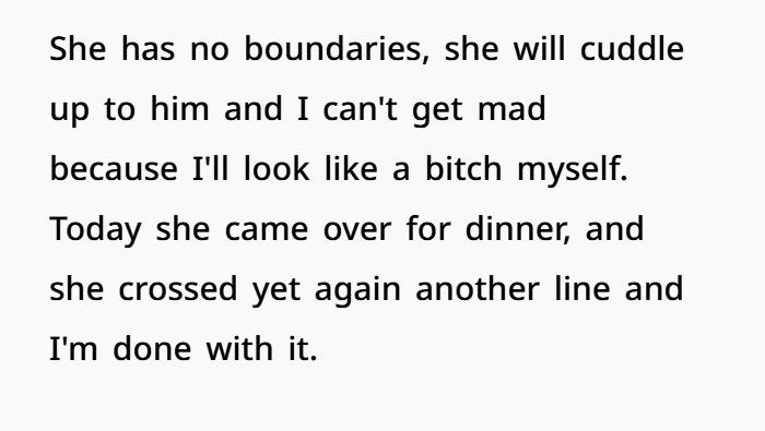 You don’t need to demand he cuts her off completely. But you do need clear, non-negotiable boundaries. Not vague discomfort. Not hints. Clear lines.