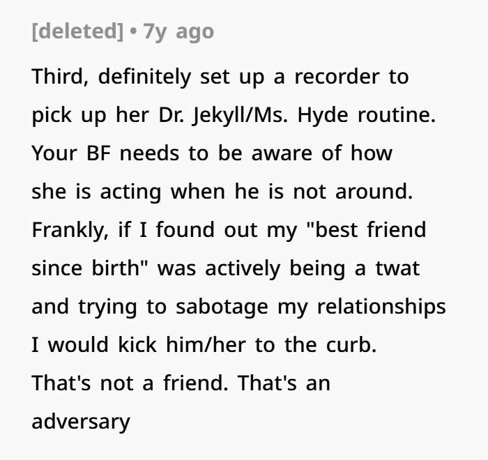 What you’re dealing with here isn’t just “a jealous best friend.” It’s a classic boundary problem mixed with something called covert relational aggression. That’s when someone undermines you in subtle, hard-to-prove ways—especially in social or romantic dynamics. It’s calculated. It’s controlled. And yeah, it can make you feel like you’re going a little insane because there’s never enough “evidence” in the moment.