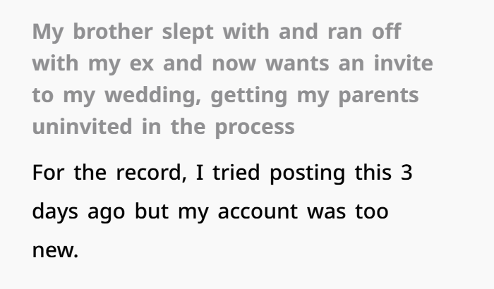 So when the brother suddenly pops back up asking for a wedding invite? That’s not a neutral request. That’s reopening something that never fully healed.