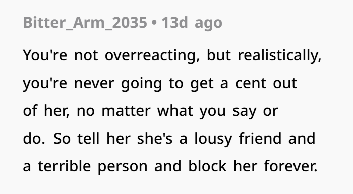 So I stood my ground. I told her if she didn’t pay, then this is what happens — you don’t get it back. Now the question: was I overreacting or was I just enforcing boundaries?