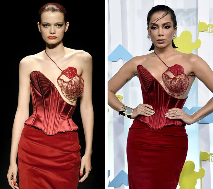 It’s kinda cool seeing how one outfit can look so different in two worlds — fashion week runway vs celebrity style. One’s edgy and artistic, the other’s classy and camera-ready. Either way, both are serving major style inspiration and viral fashion moments.