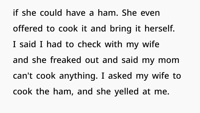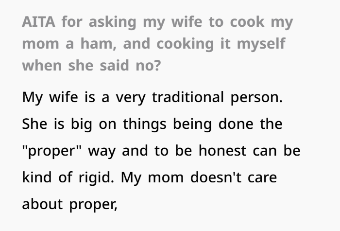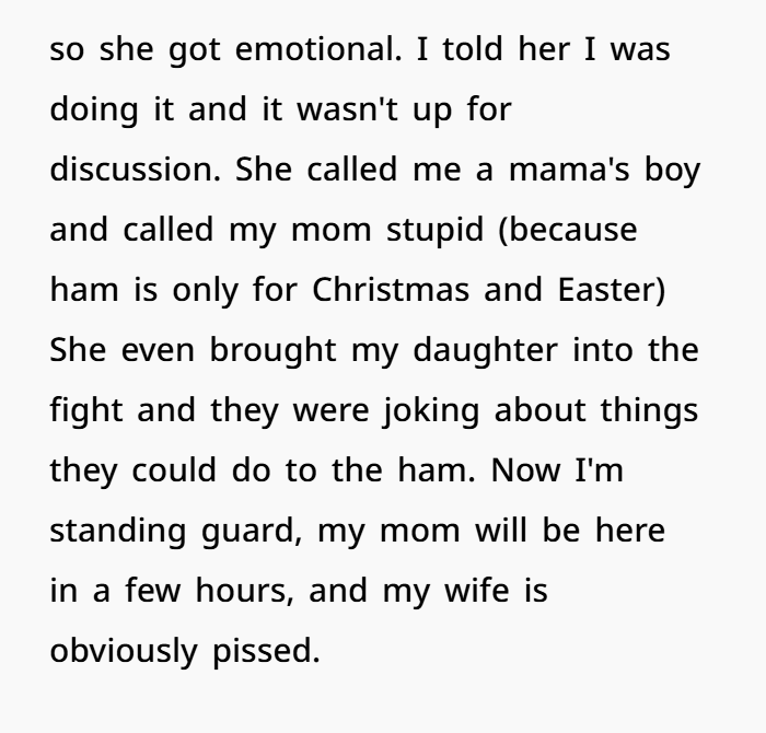 AITA for Cooking My Mom’s Ham Despite My Wife Saying No?