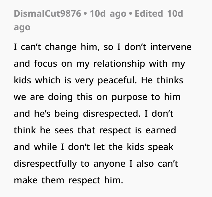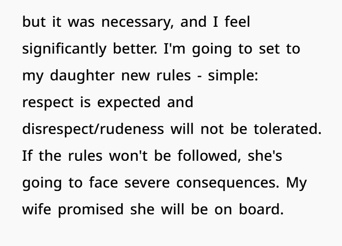 - Set Non-Negotiable Boundaries. The dad’s new rule—“respect is expected, disrespect has consequences”—is fair and long overdue.
