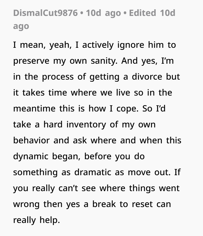 It’s no surprise he’s considering moving out. That’s not cowardice—it’s self-protection. Sometimes, you have to step away from the source of harm to heal. In fact, experts agree that establishing boundaries is a healthy response to emotional abuse, even if it means physical distance from the ones causing the hurt.