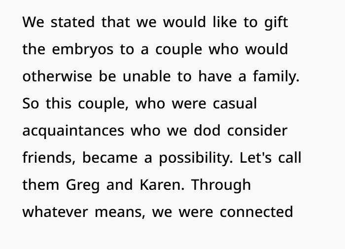 AITAH for Destroying Embryos After a “Friend” Couple Turned Toxic?