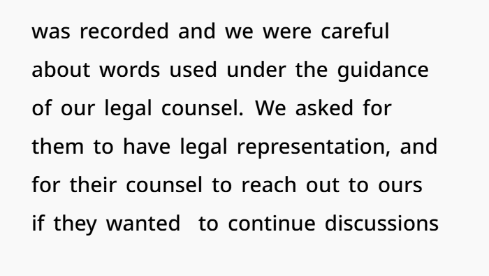 So if Greg and Karen try to argue there was some “oral agreement,” that’s going to be a tough sell. Especially when your legal team has recordings of you specifically saying things like “we are considering gifting, but nothing is final.”