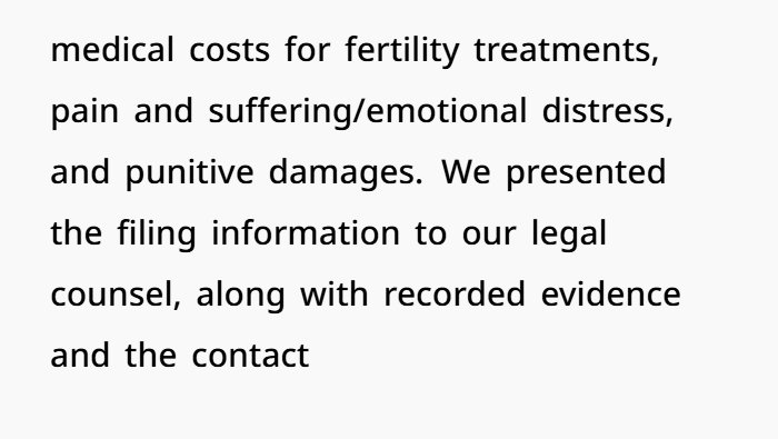 In this case, YOU weren’t negligent. You protected yourselves legally, followed all protocols, and made a personal decision based on new, alarming info. Destroying embryos that legally belong to you isn’t malicious—it’s precautionary. And in fact, Greg and Karen’s recorded rants and the CPS threat may actually be used to show that YOU were the ones emotionally distressed and justified in taking action.