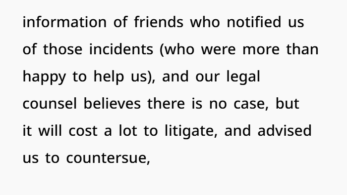 Yes, the lawsuit sucks. Yes, it’s going to be stressful. But courts don’t like it when people weaponize the legal system to get revenge. And since you have legal counsel, documented recordings, and no signed agreement, chances are very high this case gets thrown out—or at least ruled in your favor.