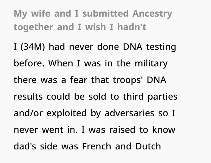 A man took an Ancestry DNA test at his wife’s suggestion thinking nothing would really come out of it