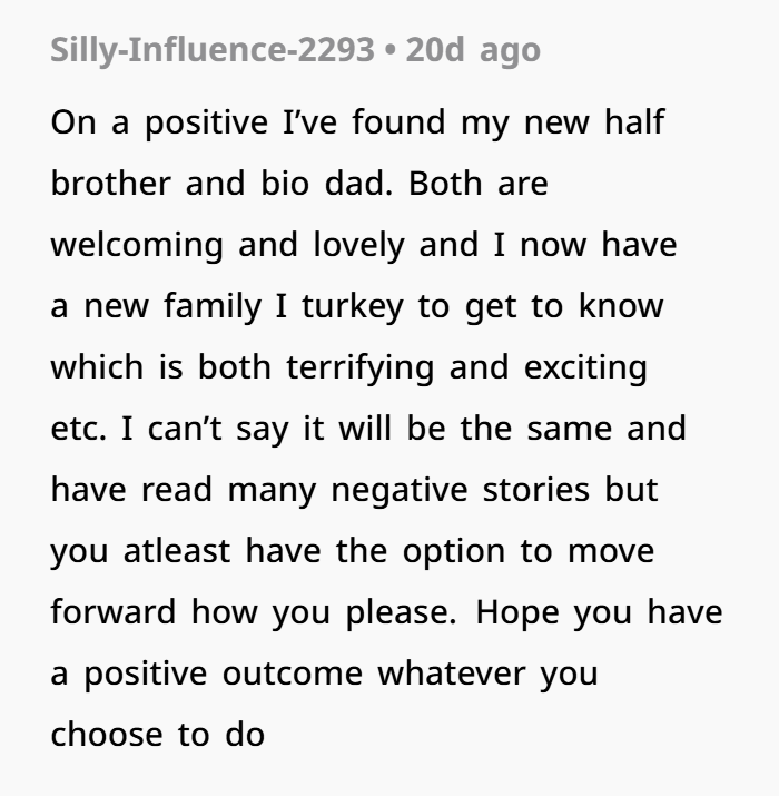 Family is more than blood—but blood can still matter. It connects us to medical history, cultural identity, and sometimes, parts of ourselves we didn’t know were missing. For the man in this story, connecting with his half-brother and bio dad is just the beginning. It doesn’t replace the years lost or erase the pain, but it’s a path forward.