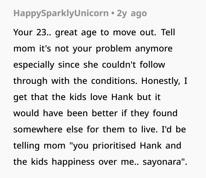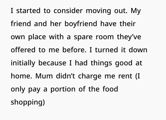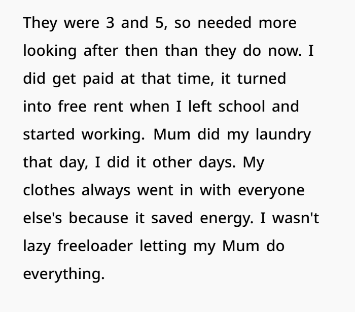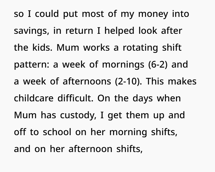 This story dives deep into what happens when family expectations clash with personal boundaries. A 23-year-old woman has been living at home with her mum and younger half-siblings, essentially acting as a built-in nanny for years — no rent, just responsibilities. She helped get the kids to school, made sure homework got done, and was a consistent part of their daily routine. In return, she was saving money, enjoying a safe home base, and helping her family out.