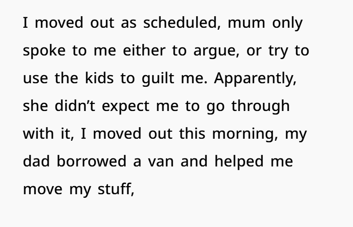 The moment her mum started using the kids to guilt-trip her? That’s manipulative. That’s not parenting, that’s emotional blackmail.