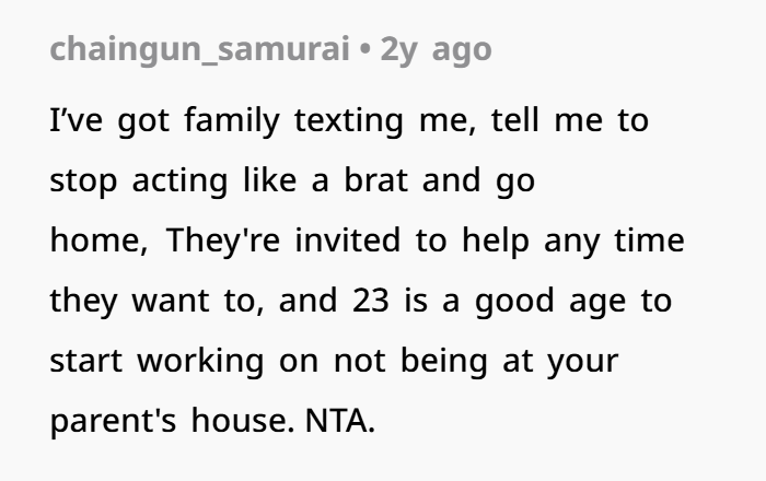Commenters urged the young woman not to give in to the shaming and guilt-tripping: “You have the right to move out”