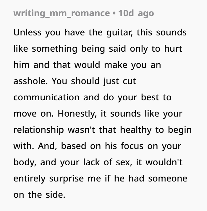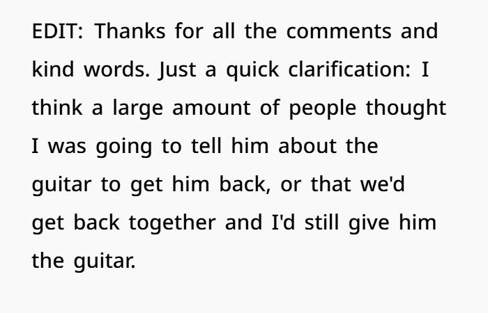 WIBTA for Telling My Ex I Was Gifting Him a $2,000 Guitar… Until He Dumped Me Over Cream Cheese?