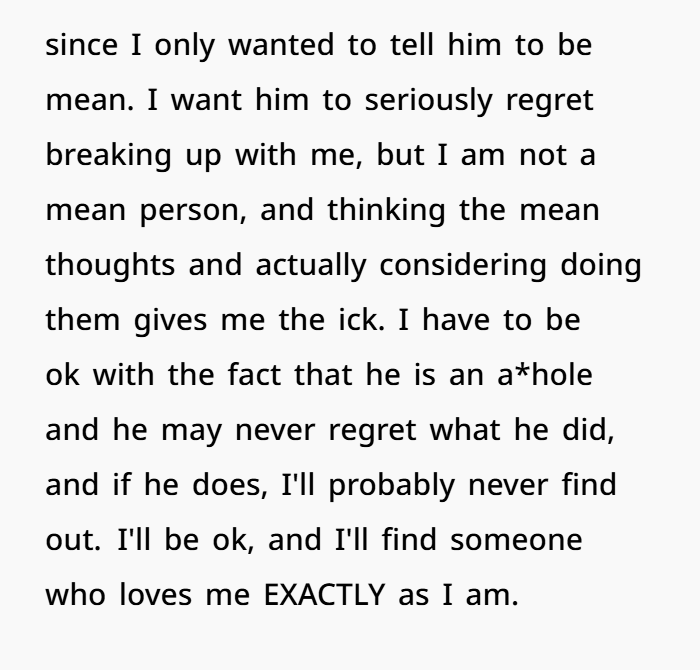 You already said it best: “I have to be ok with the fact that he is an a**hole and he may never regret what he did.”