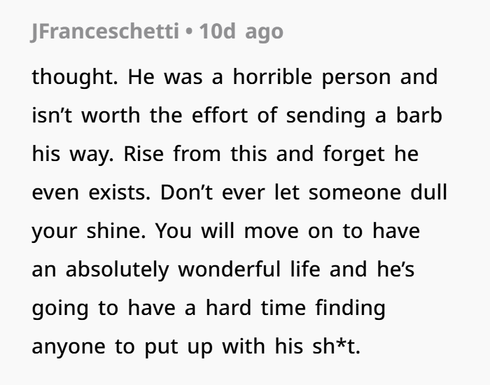 Let him wonder. Let him not know. That silence? That’s power. That’s choosing dignity over drama.