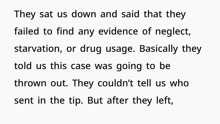 Because now there’s a documented CPS investigation confirming the child was safe. Healthy. Properly cared for. That official paper trail doesn’t just vanish. If someone later tries to push new child neglect allegations or reopen a custody dispute, there’s already a verified record that contradicts those claims.