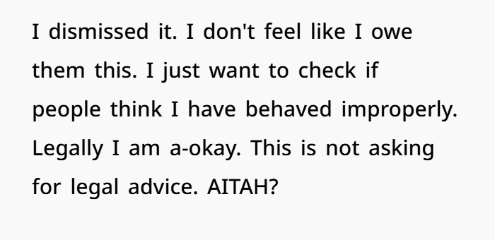I feel I do not owe them that. Legally, I’m covered. Emotionally, I feel pushed aside. So, WIBTA for refusing to comply with their expectations?