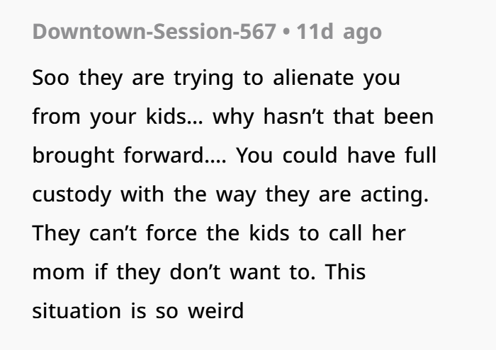 Folks were shocked that he had the audacity to alienate the poster from her own kids, and even labeled him as a “bad father”