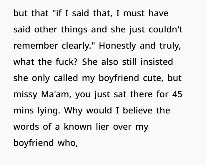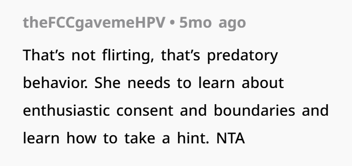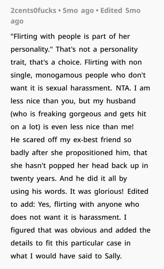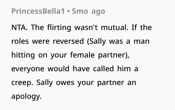 Folks were aghast at Sally’s “predatory behavior”, and they all agreed that she needed to apologize to the poster’s boyfriend as well