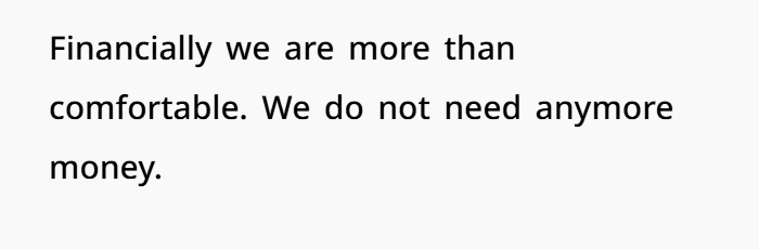 This isn’t about money. The couple is financially secure. She said it outright: “We are more than comfortable.” The proposed move wouldn’t solve a financial crisis. It’s purely about his career ambitions—at the cost of her hard-earned stability.