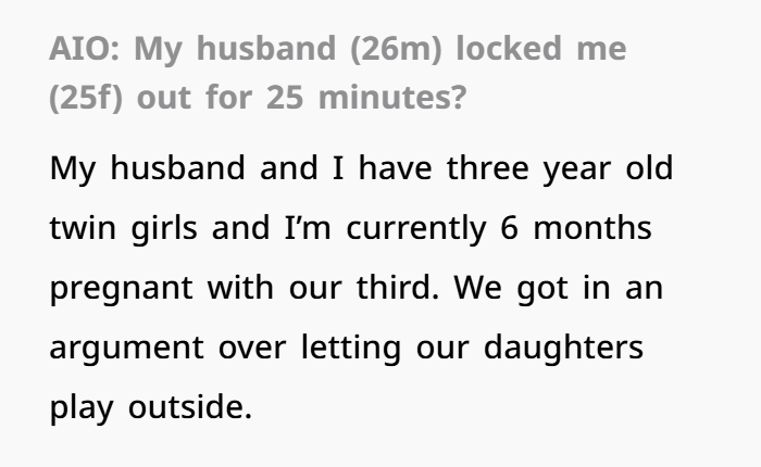 Husband Locked Me Out for 25 Minutes Over an Argument—AITA?