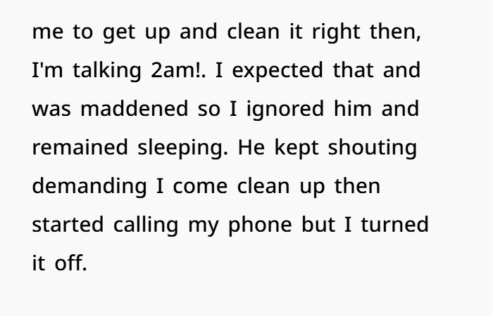 In this story, OP has been doing nighttime laundry for months, barely sleeping, and now she’s being yelled at for not springing out of bed at 2 a.m. for the 41st cleanup. That’s not just inconvenient — that’s unsustainable.