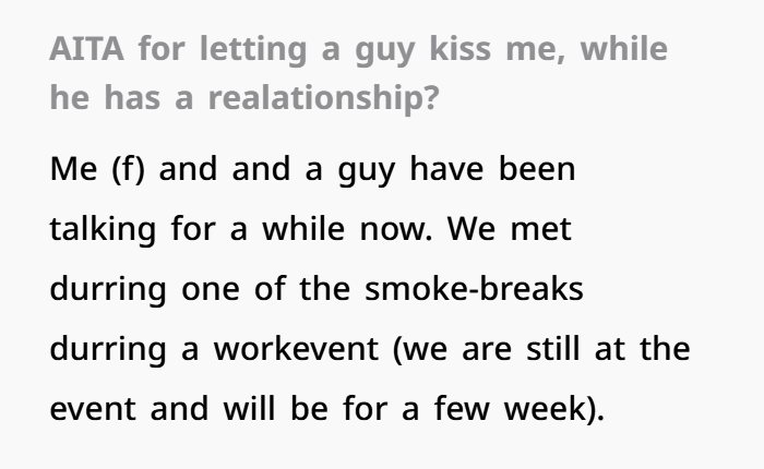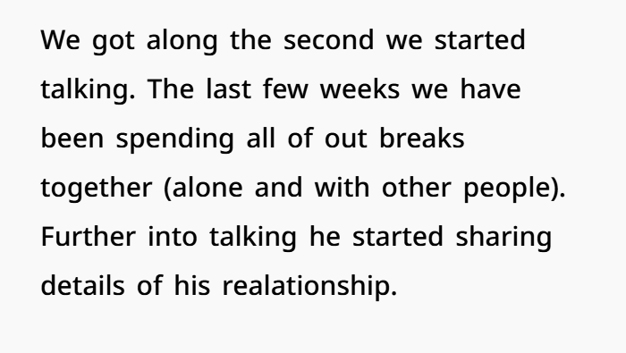 This situation lives in that messy gray area where emotions, attraction, and ethics all collide. You met a guy during a work event, hit it off instantly, and naturally started spending more time together. From the start, you knew he had a girlfriend, and to your credit, you didn’t push anything forward or flirt openly. Still, the connection grew. Long conversations, shared breaks, and eventually deeper emotional talks about his relationship created a kind of closeness that felt more than casual.