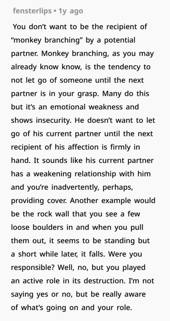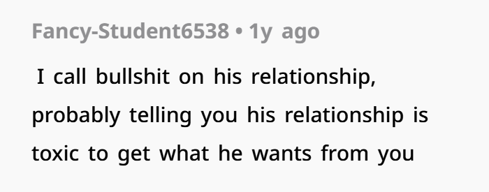 Another layer here is the “he’s in a toxic relationship” justification. This is where things can get tricky. It’s easy to think: “Well, his relationship is already broken, so this doesn’t really matter.” But in reality, that’s often how emotional affairs begin. People use a bad relationship as a stepping stone instead of properly ending it.