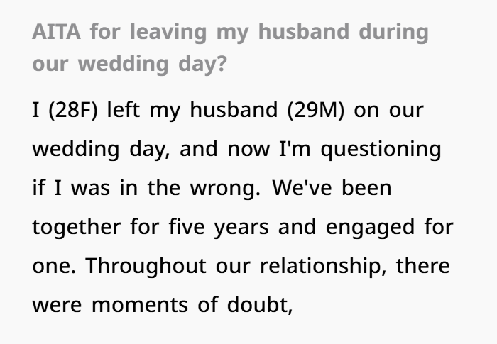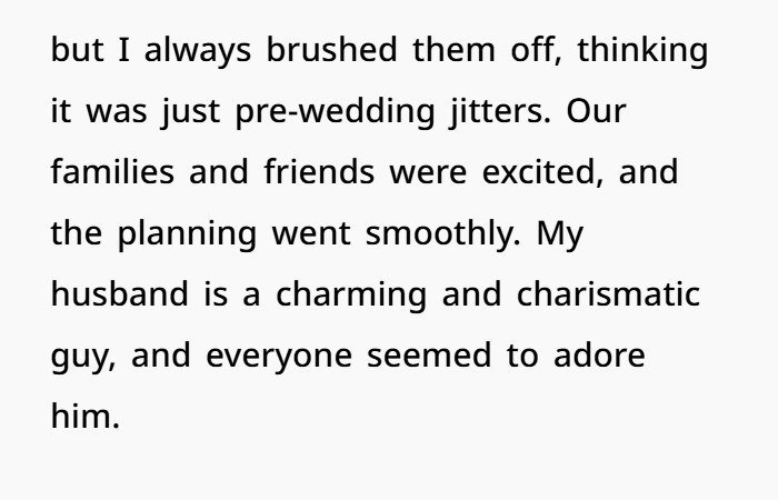 For most brides, their wedding day is the fairytale ending—or beginning—they’ve always dreamed of. For OP (28F), that dream turned into a personal nightmare. After five years together and one year of planning their big day, she walked down the aisle with her charming, seemingly devoted fiancé (29M), surrounded by friends, family, and a flawless backdrop. Everything looked perfect from the outside—until the cracks beneath the surface split open.