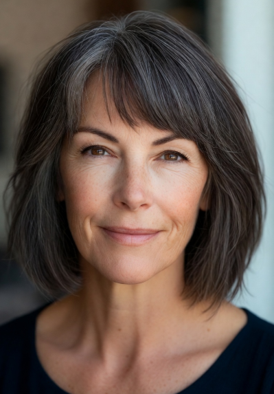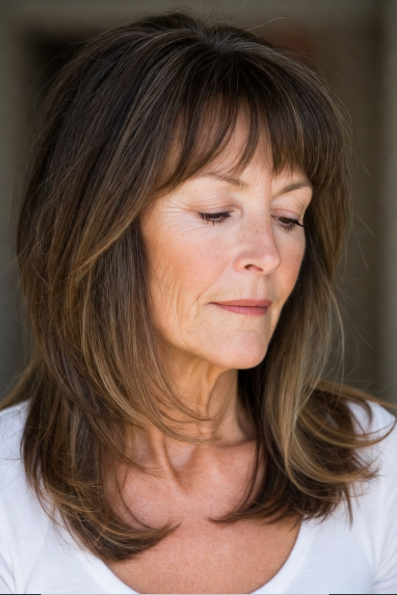 Shoulder-length cuts are endlessly flattering, low-maintenance choices for women over 50. This versatile length offers the perfect balance between ease and elegance, delivering full-bodied volume and natural, easy movement. Face-framing layers elevate the style even further, adding softness and a polished, luxurious finish that enhances your features.