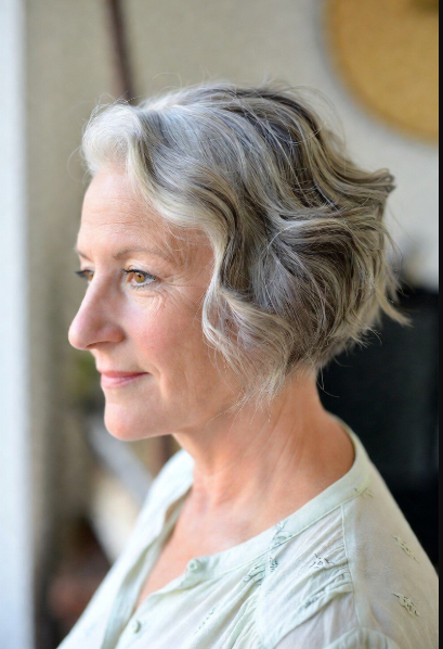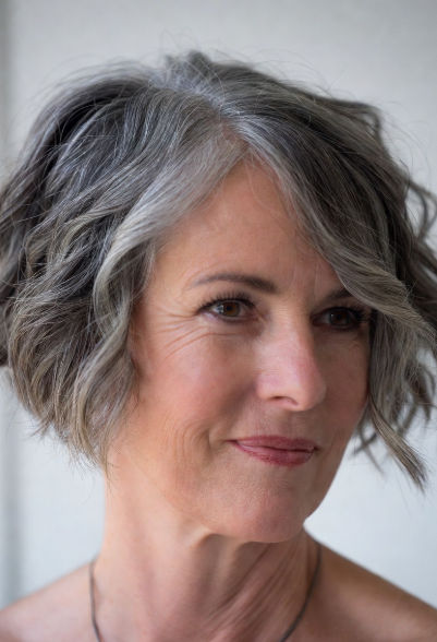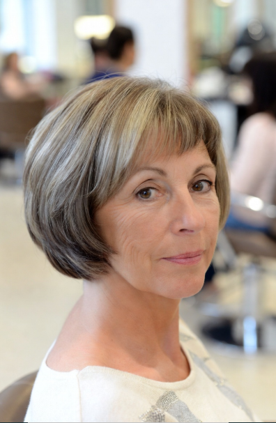 A stacked bob with a textured crown is an excellent low-maintenance choice for women over 50 with fine or thinning hair—especially if teasing for volume isn’t your style. This cut is known for its full, rounded silhouette, with built-in lift created by stacked layers at the back. The added texture at the crown enhances the effect even more, giving the hair natural height, movement, and a lively, dimensional finish.