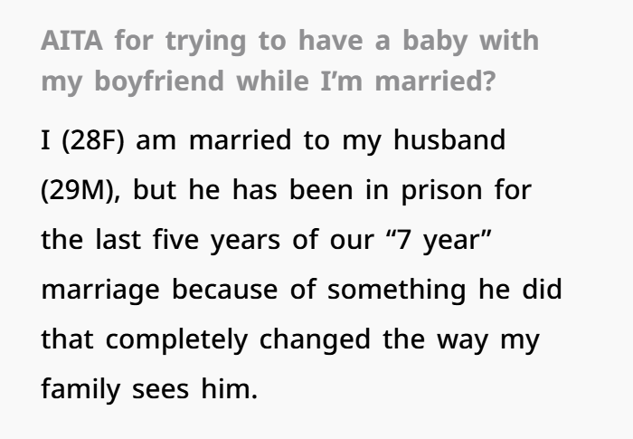 Relationships are messy. Add prison, divorce delays, and a new serious partner into the mix and things can get complicated fast. One woman recently found herself in the middle of a moral dilemma that sparked heated debate online. She’s still legally married to her husband, who has been incarcerated for five years, but emotionally their relationship ended long ago. Now she’s living with her boyfriend and even thinking about starting a family. The question is simple but heavy: is she wrong for moving on before the divorce is finalized?
