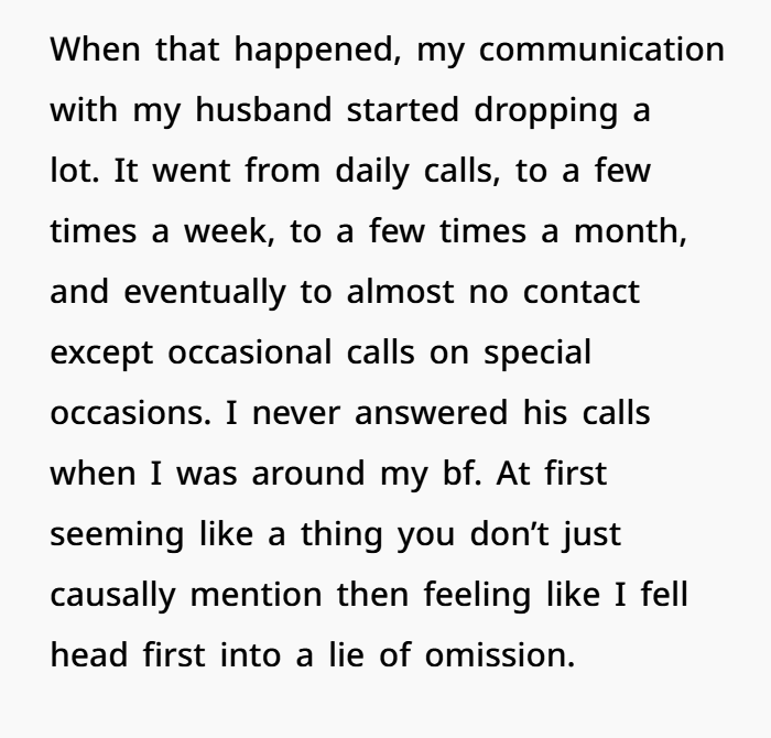 At that point, the calls with her husband became less frequent. Daily conversations turned into occasional calls, then eventually almost none at all.