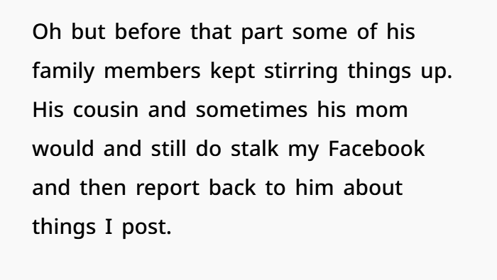 But the husband wasn’t completely out of the picture. Family members — specifically his cousin and mother — were still monitoring her social media and reporting things back to him. That added another layer of tension.