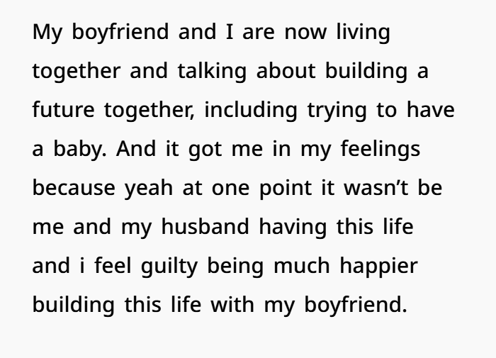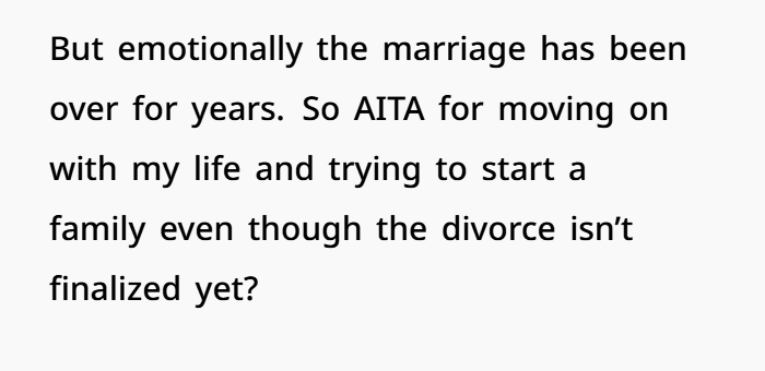Still Married, Living With My Boyfriend, and Trying for a Baby Am I the Villain Here?