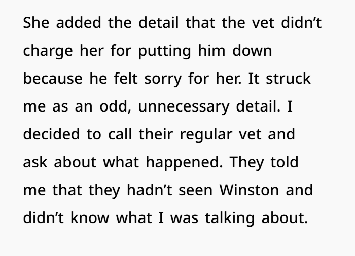 And about that strange comment — “the vet didn’t charge me because he felt sorry for me.” That’s not how most veterinary billing works. Euthanasia services come with set pricing. Clinics operate under strict billing policies, liability insurance, and malpractice coverage rules. Sure, in rare financial hardship cases, fees might be reduced. But that usually requires documentation or some kind of financial assistance paperwork. It’s not random. Emergency vet bills and end-of-life pet care are structured services. So when someone says the whole thing was free out of sympathy, it raises questions. It just doesn’t line up with how professional veterinary medicine runs.