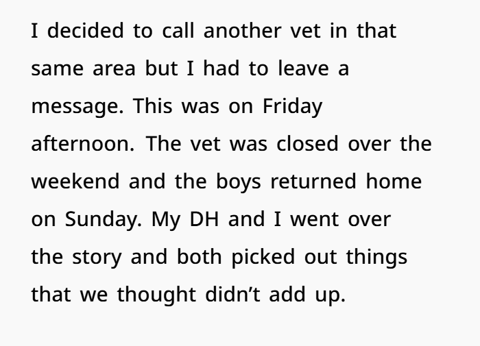 There’s also the veterinary side of this, and it’s bigger than most people realize. In some states, veterinarians are mandated reporters if they suspect animal abuse or neglect. So if someone walks into an animal hospital claiming they hit a dog with their car, the clinic documents everything. Intake forms. Condition of the dog. Who brought the pet in. Who signed for treatment. Those medical records aren’t just paperwork — they can become key evidence in a pet ownership dispute or even an animal cruelty case. That’s why calling different veterinary clinics mattered so much. Vet records often carry serious weight because they clearly show who authorized care and who was listed as the legal owner.