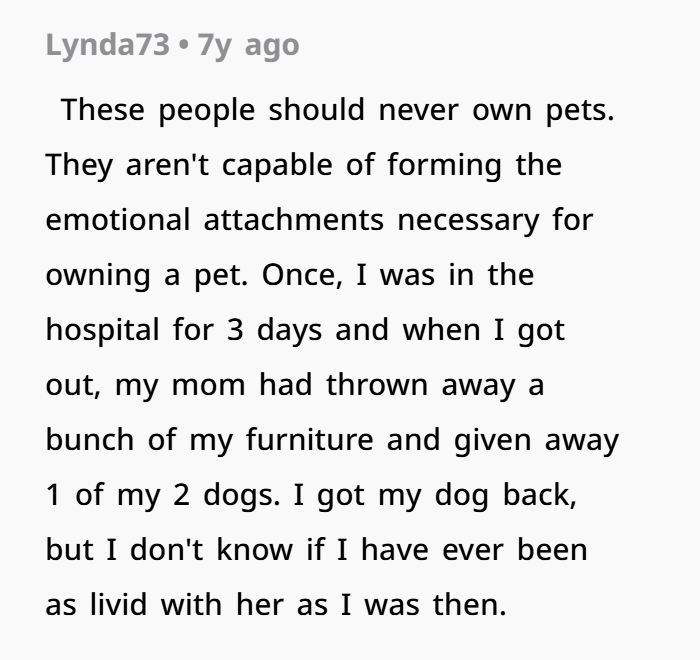 From a psychological angle, situations like this can fall under what therapists call coercive control behavior. When someone feels like they’re losing influence — maybe over adult kids building their own lives — they sometimes try to regain power in subtle or extreme ways. And sadly, pets can become leverage. There are documented domestic conflict cases where animals were surrendered, hidden, or used as emotional punishment. It sounds extreme, but it happens. Sometimes it’s not really about the dog. It’s about control.