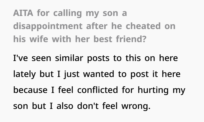 My Son Cheated on His Wife with Her Best Friend, and I Told Him He Was a Disappointment