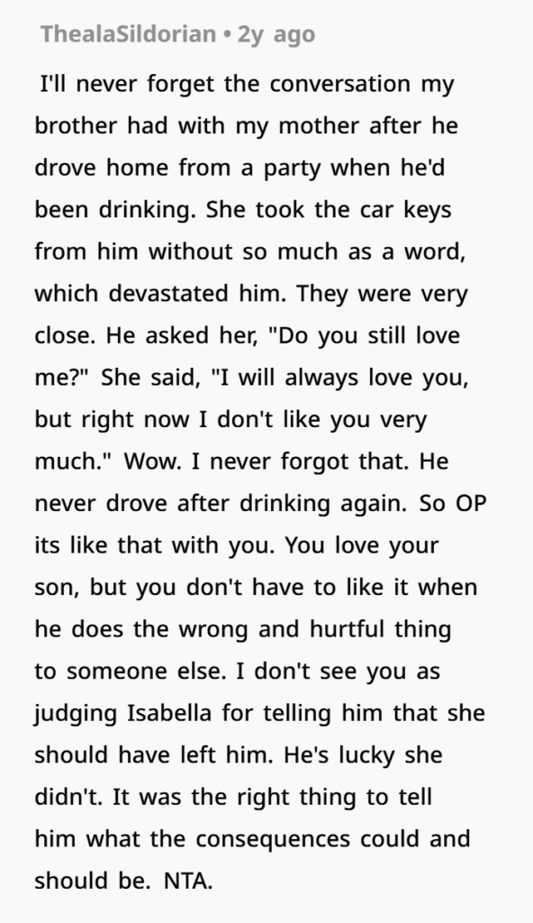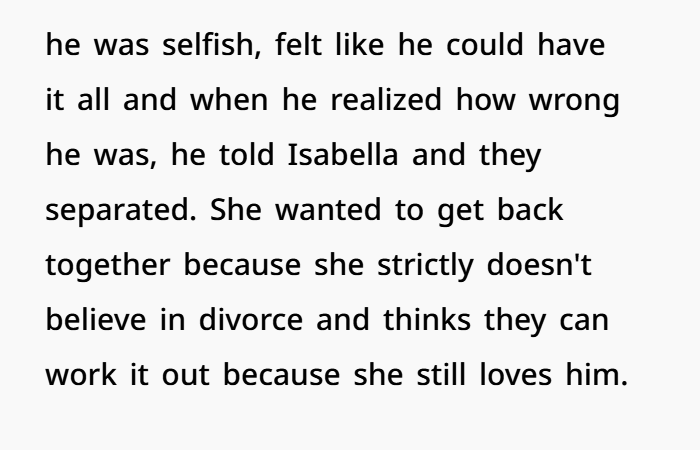 The son’s admission of cheating with Isabella’s best friend, though, was a different kind of betrayal. For the mother, it may have been hard to process why her son would have taken such a reckless step, especially when she thought so highly of Isabella. This deepened her sense of disappointment, as it wasn’t just infidelity, but infidelity with someone so close to Isabella. And yet, Joseph’s remorse was genuine. He acknowledged his selfishness, recognized his wrongdoings, and promised to make things right. This remorse showed that Joseph was at least taking responsibility for his actions.