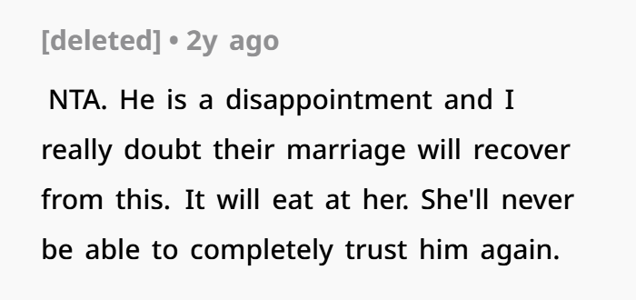 As for the husband’s perspective, it’s possible he saw his wife’s actions as too harsh because of the emotional vulnerability involved. When someone is already feeling low, adding judgment from a loved one can feel like kicking someone when they’re down. While he may have wanted to protect his wife from guilt or shame, his approach shows how people can respond differently to emotional challenges. Some prefer to console, while others want to hold their loved ones accountable for their mistakes.